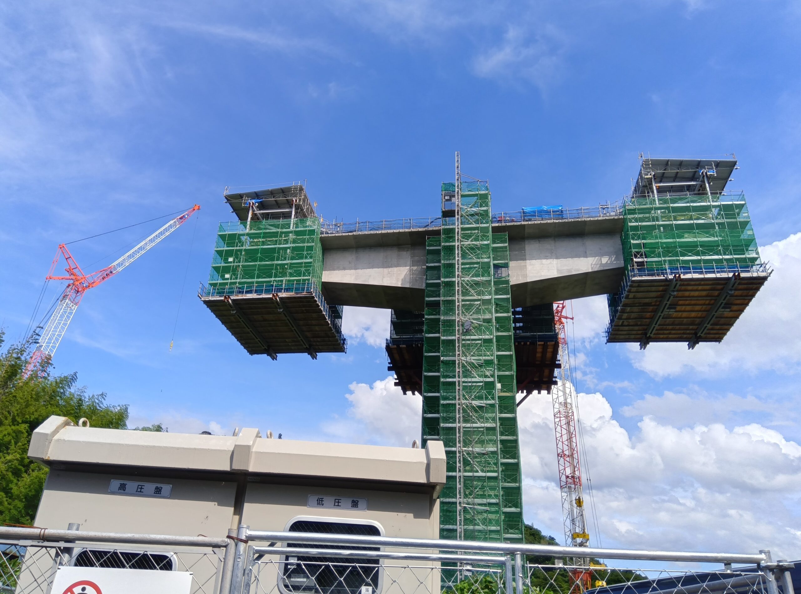 足場・支保工を整えたうえで、橋梁上部のコンクリート施工を安全第一で実施しています。